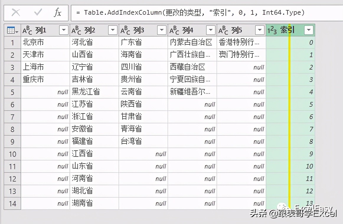 这个顺序与表中原来的顺序并不一致,所以我们可以进行排序,使得首先原来在前面的列的数据始终在前面,同一列中原来排在前面的顺序也始终在前面。