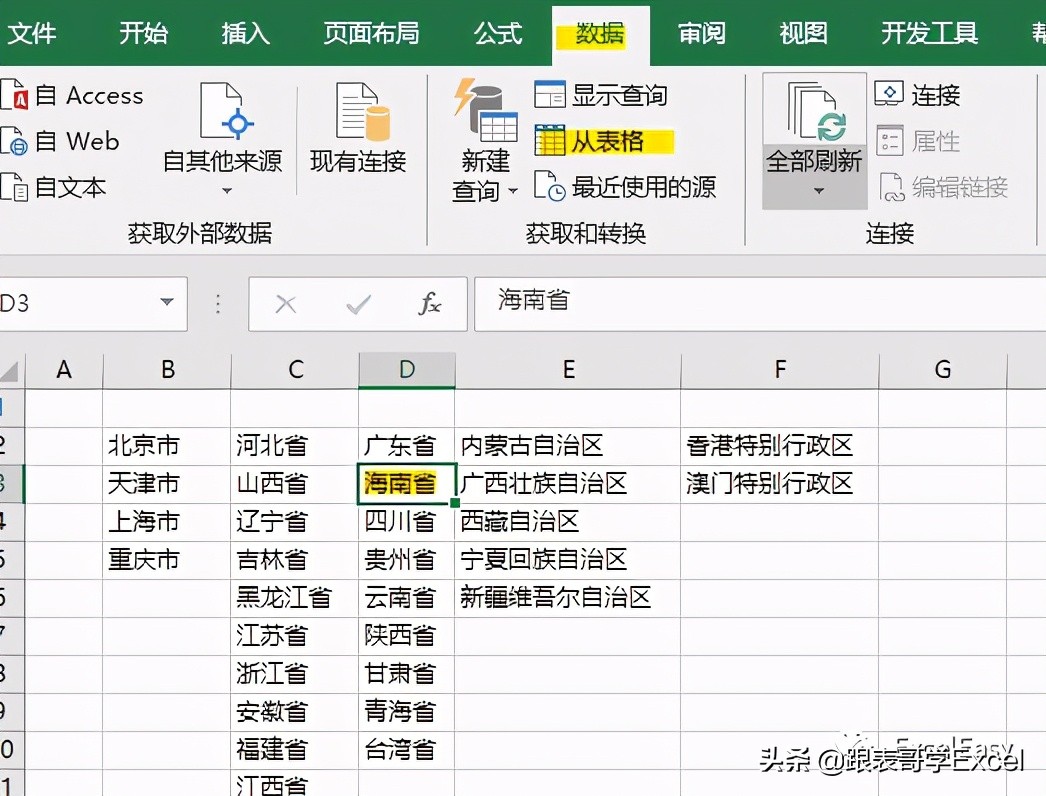 1.选中数据区域的任意单元格,点击“数据”选项卡下的“从表格”按钮: