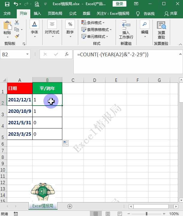用YEAR(A2)与字符串"-2-29"连接,生成“2012-2-29”样式的字符串。如果该年份中的2月29日不存在,公式中的“年份-2-29”部分将会按文本方式进行处理。