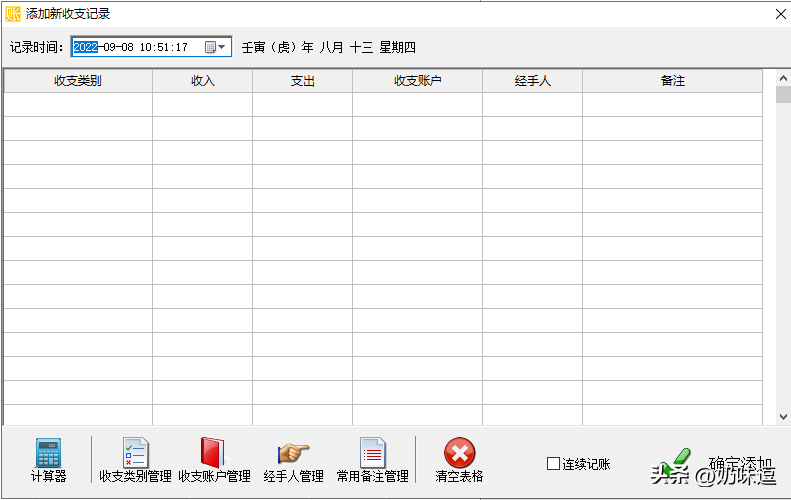 选择好后,就可以开始记账了,可以一行记录一行,记得不要串行、错行,记得保存
