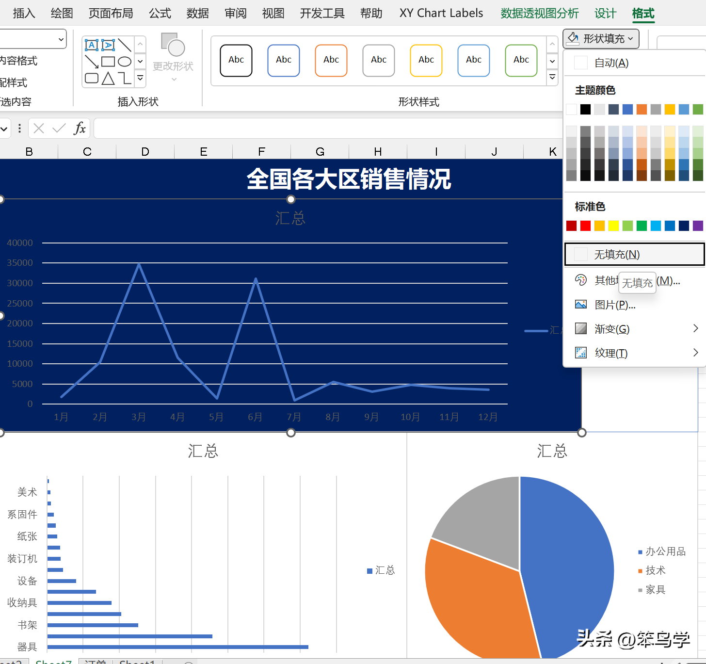 选中折线图,将形状填充设置为无填充,让底色显示出来,如下图所示。