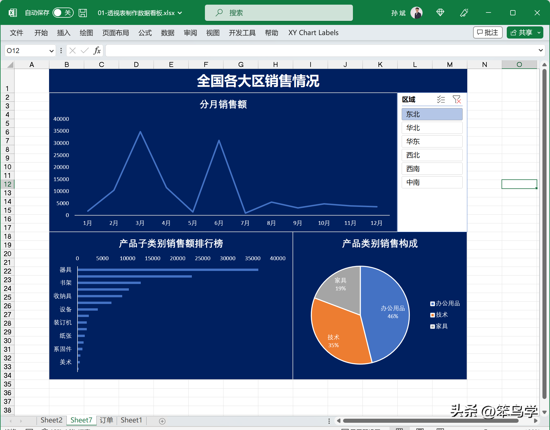 这个数据看板通过数据透视表就可以完成,下面就来说说如何制作这个数据看板。