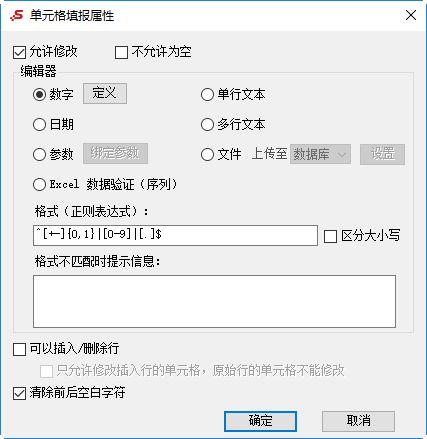 单击电子表格设计器工具栏中的 填报属性 按钮,按照下图进行设置:单元格区域“C4:E10”为“数字”类型。