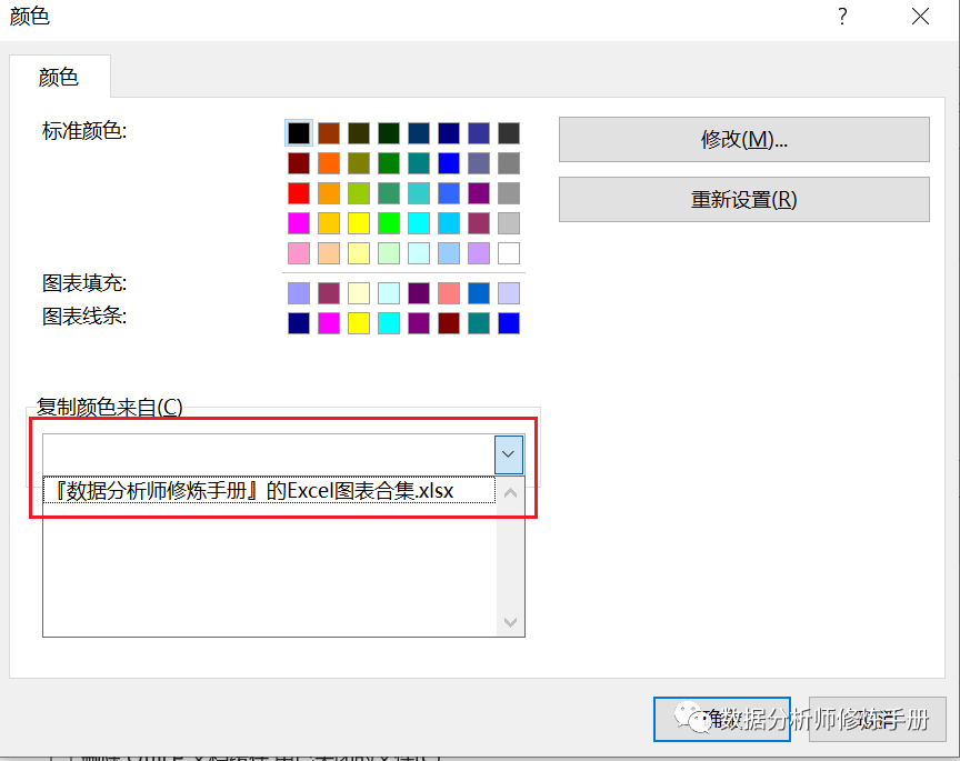 可以通过以下操作,使得自定义配色方案可以在工作簿间共享。