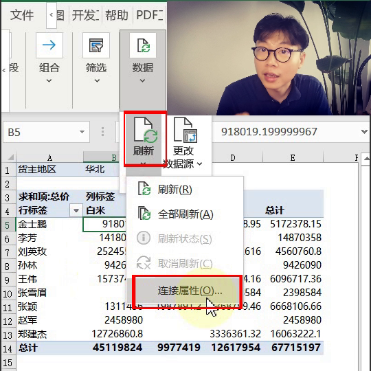 方法:手动刷新。当数据源发生变化时,我们可以点击数据透视表任意单元格,单击右键选择"刷新"。或者我们直接在数据透视表对应的功能区中,直接点击"刷新"按钮。但每次都要手动刷新,还有点麻烦,有没有自动刷新的方法呢?