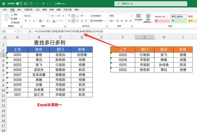 Vlookup的第三参数实现自动匹配,最大的作用就是使用一次函数就可以查找多行多列的数据,我们需要借助match来实现自动匹配第三参数的效果