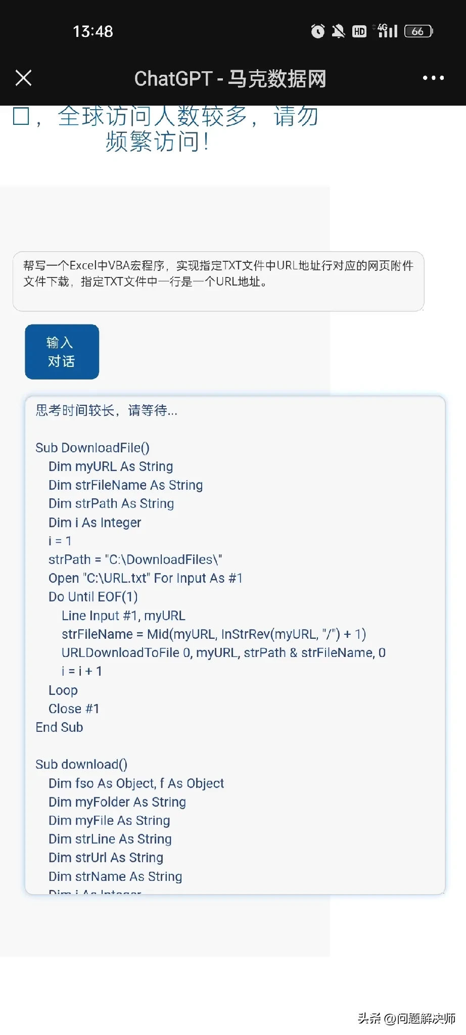 第一次利用chatgpt写Excel的VBA宏程序, 等下去验证一下好不不好使。