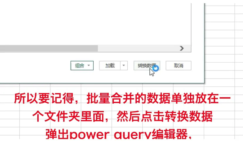 所以要记得,批量合并的数据单独放在一个文件夹里面,然后点击转换数据,弹出power query编辑器,
