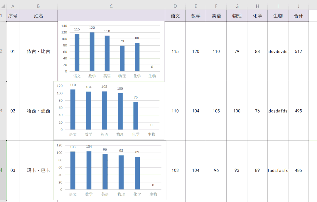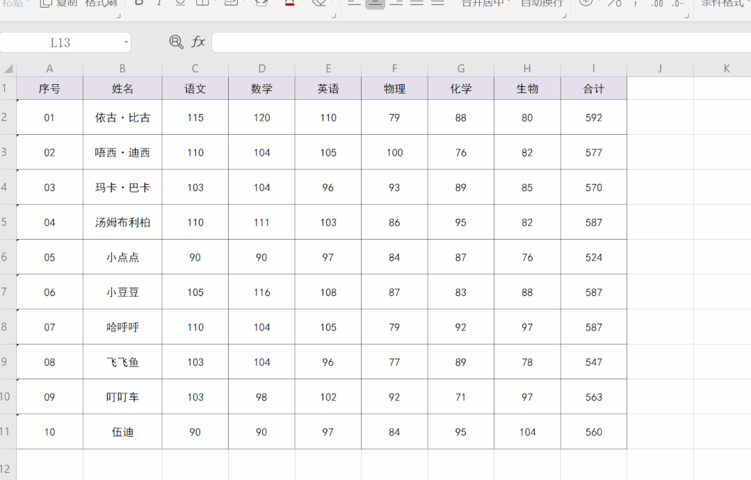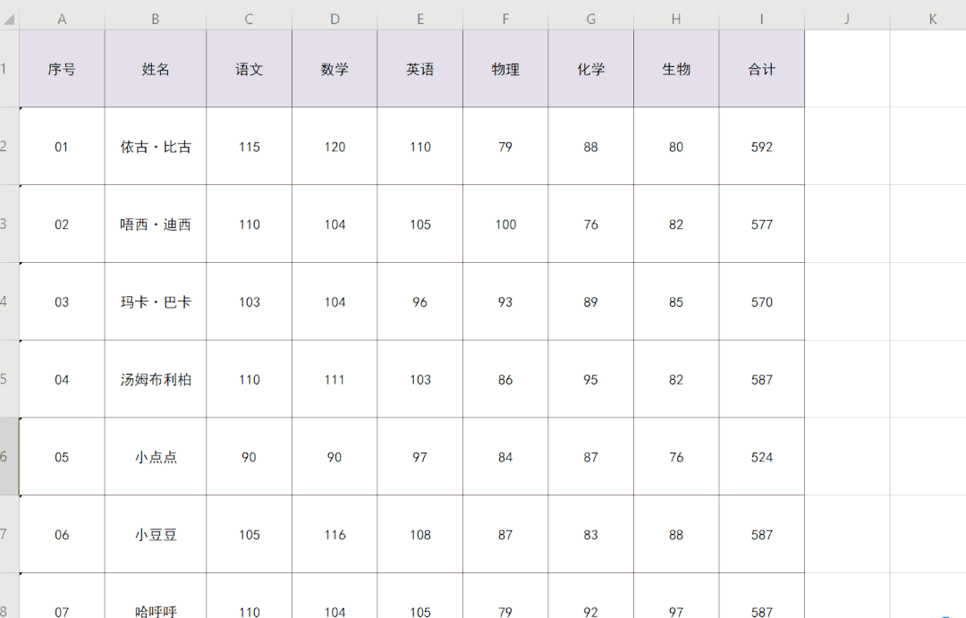 图8、统一行高列宽