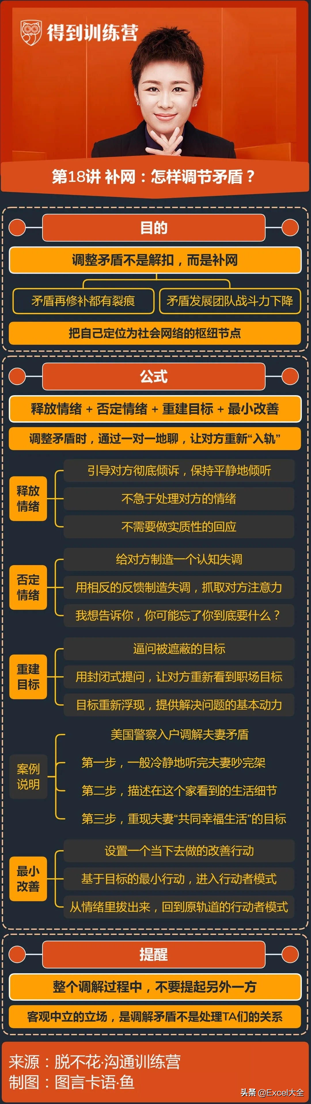 18、怎么调节矛盾?调节矛盾=释放情绪+否定情绪+重建目标+最小改善,让自己成为社会网络的枢纽节点,修补裂痕。