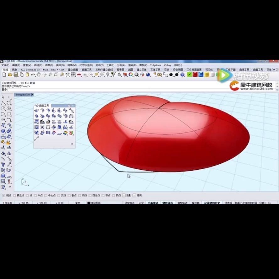 ·可以找到这样的命令,先把线画好,然后这个的右键沿着路径旋转,如果你左击它是旋转成型,所以要右击它,右击选取轮廓曲线、轮廓路径、起点、中点。这个时候你要把物件的锁点打开,选中焦点,这样就得到了一颗心,但是这是一颗易碎的心,你看,它可以岔开成两个面。