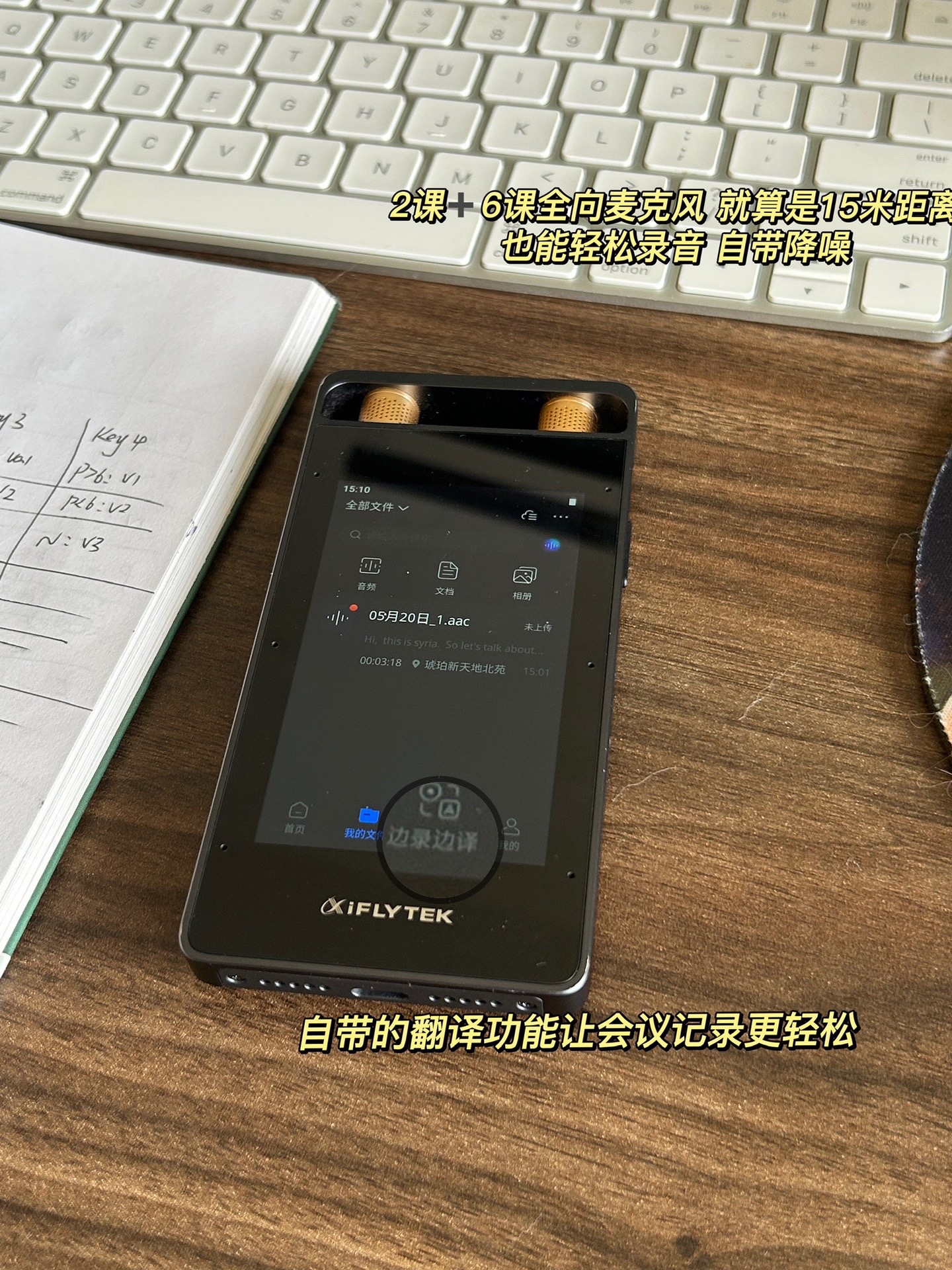 我用的是讯飞智能录音笔SR502,一整场会议内容不仅支持中英翻译,多语言也能互译,普通话转文字准确率能高达98%,连日常的图片,ppt,excel 都能提取文字,不要太方便
