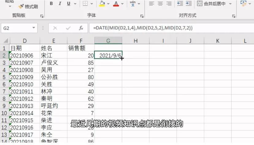 [灵光一闪]所以讲之前我还是和大家说一下万能的办法,那就是date函数。他有三个参数分别是年月日,咋们可以利用之前学过的mid,或者是right,left等函数去分别提取出文本中代表年月日对应的数值,可以看一下当前的公式,对这几个函数不了解的话可以翻一下上几期的视频,最近几期的视频知识点都是衔接的。