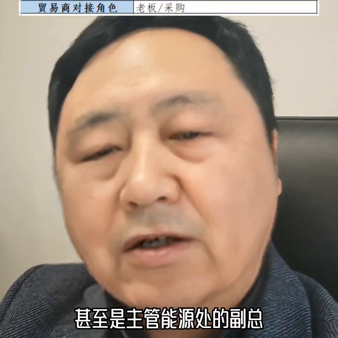 或者这些公司的贸易公司、港口收货商,山东、河北、河南、北方四港,因为这些地方运费便宜,找到了这些目标客户的公司。我们去找这些公司的什么人,一定要找能拍板的人。比如终端客户里的能源处负责人,甚至是主管能源处的副总,贸易商里边的老板,以及他们的采购经理。一个排版的一个主要对接干活的,定位完用户画像。