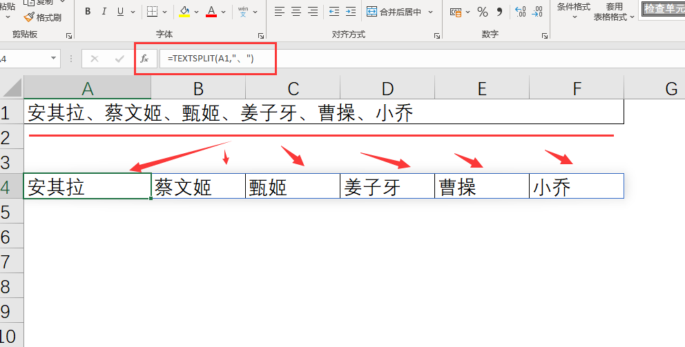 6.单元格分开:TEXTSPLIT 图6 =TEXTSPLIT(A1,"、")