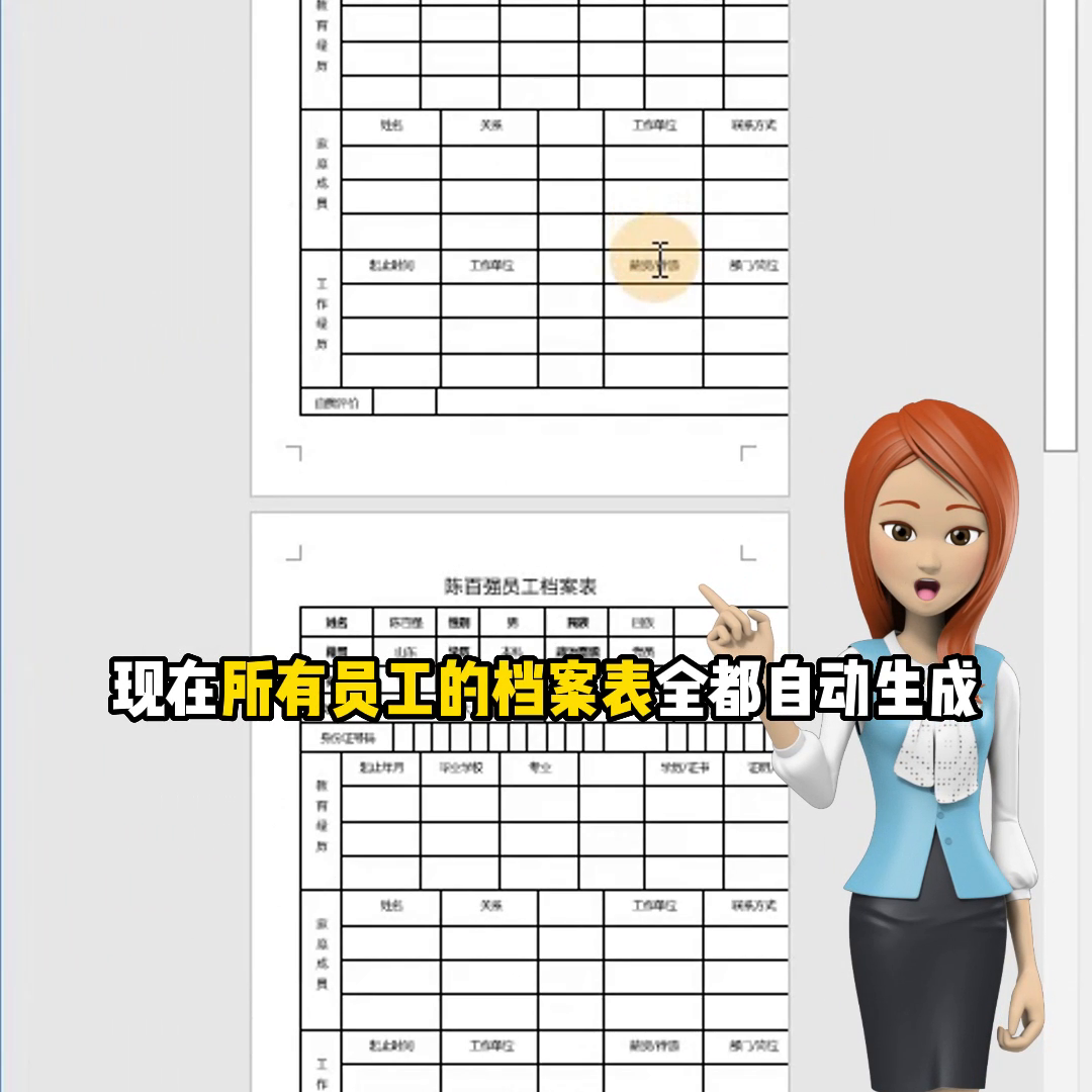 想把这1000名员工,每人制作一个员工档案表,并且要保存成独立的word文档。而且每一个文档里,都自动填好了相对应的员工信息。