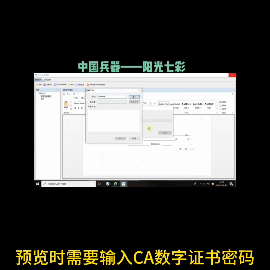 ·至于第二种方法去制作的文件,这个手写签章,需要使用word当中插入图片的方式,将手写字直接插入,这样生成的pdf里面,插入图片的一个方式来展示的。同理需要进行预览,预览时需要输入CA数字证书密码,选择公章。预览完成之后我们同样去生成PDF。