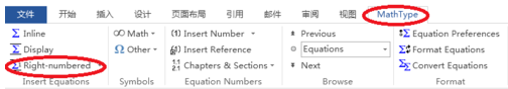 步骤3:将光标置于要插入公式的位置,选择MathType-->Right-numbered
