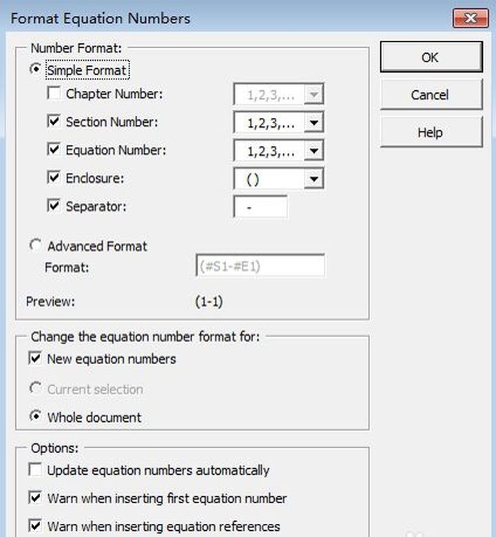 步骤2:在弹出的窗口中进行编号格式设置,其中Preview为设置后的预览格式。