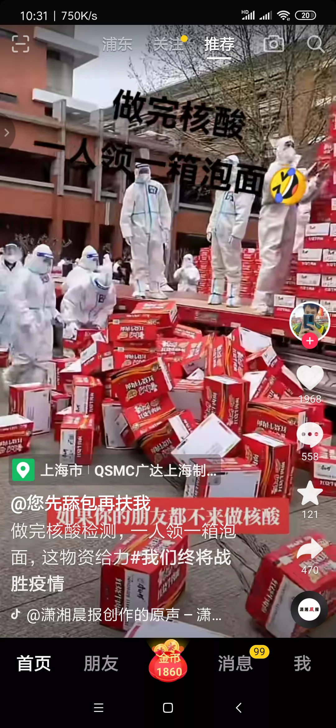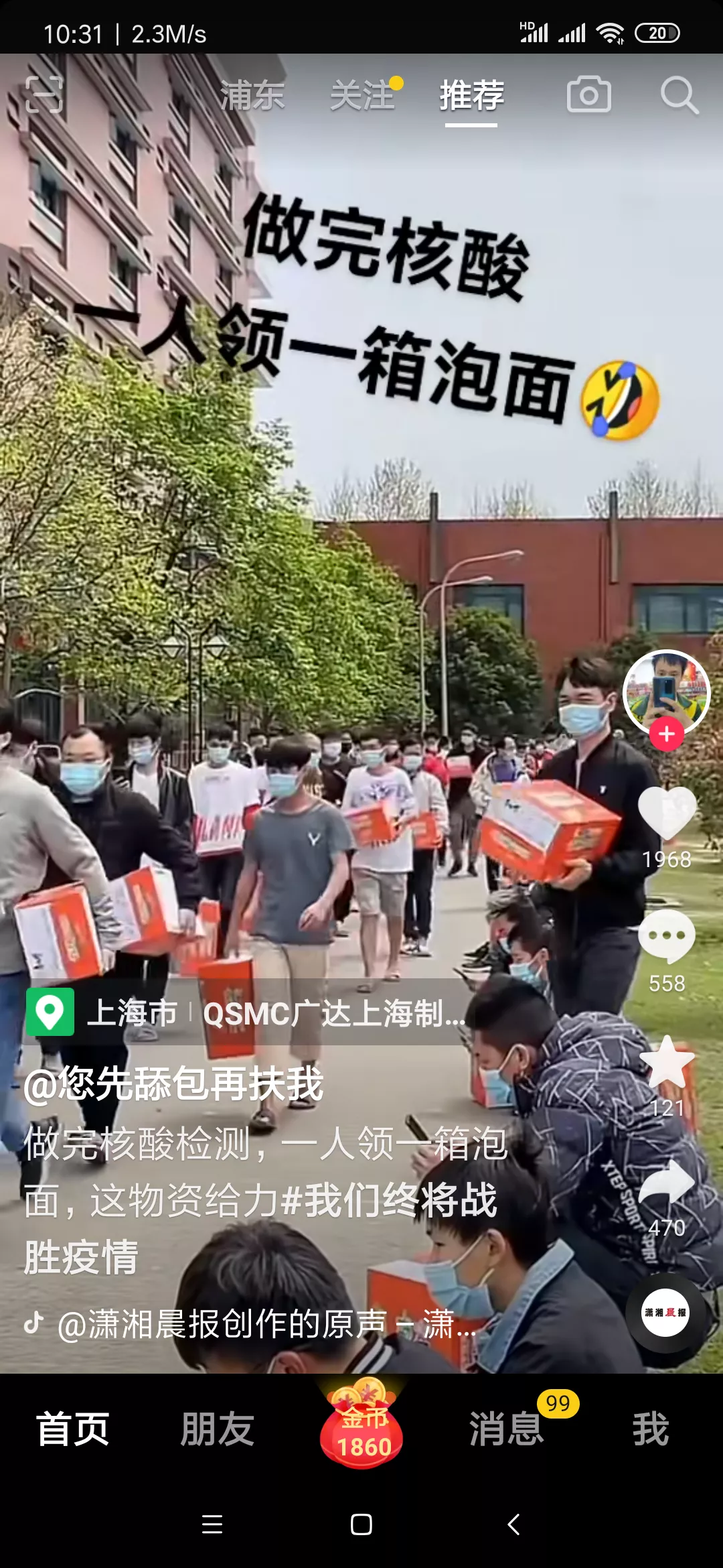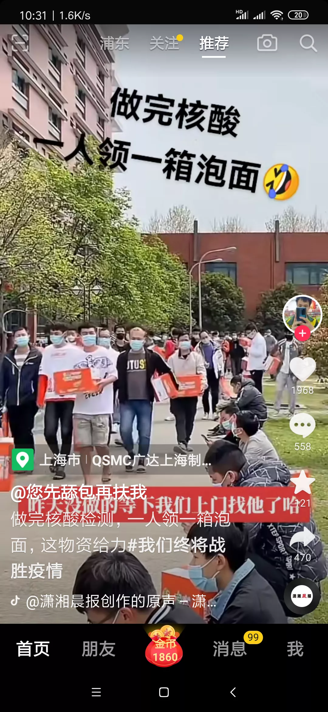 上海这家企业,做完核酸,每人领一箱方便面,能管几天的伙食了,估计都饿不着了,现在只要是吃的都是硬通货,赶紧过来做核酸,不做核酸就不要跟他做朋友了,昨天没做的,等一下要上门找他了,对他提出严肃批评,躲是躲不掉的,如果你的朋友都不来做核酸,以后就不要跟他做朋友啦,觉悟太低了