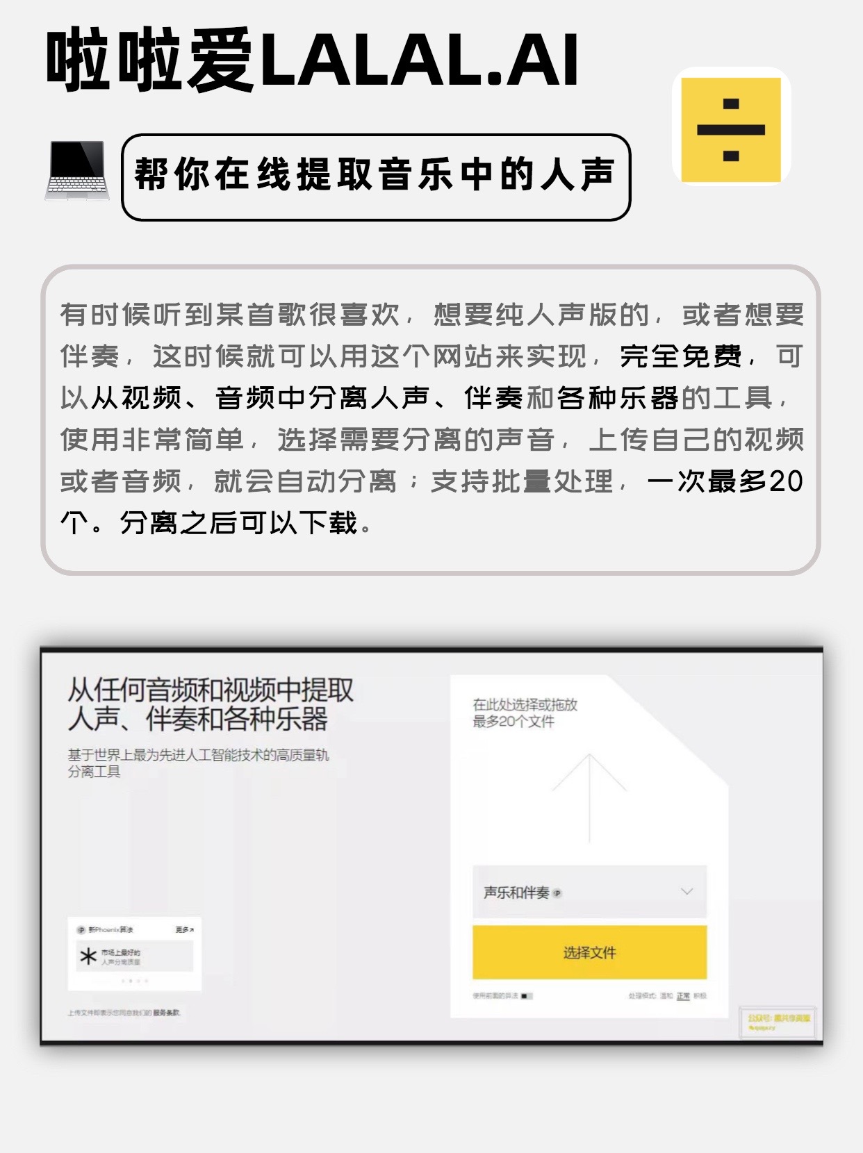 完全免费,可以从视频、音频中分离人声、伴奏和乐器~