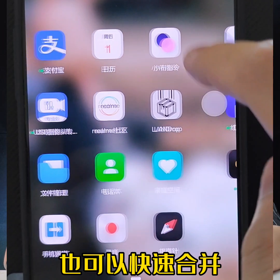 长按文件夹可以拖动到另一个文件夹,也可以快速合并。