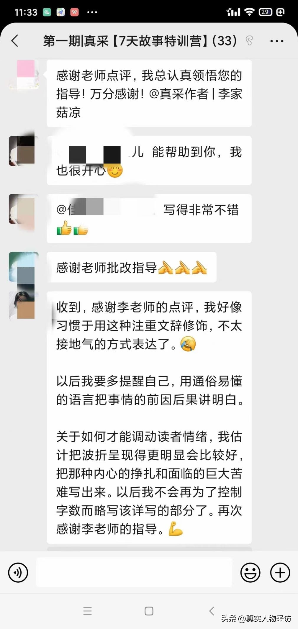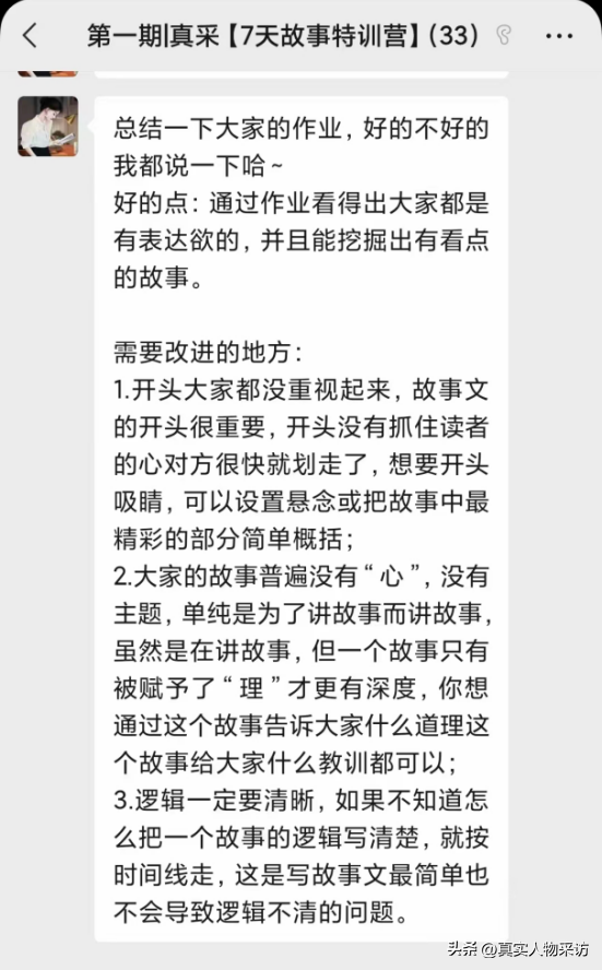 11月5日到11月11日,我们组织了第一期【真采7天故事特训营】,28位同学共有26位完成了老师布置的作业,参加活动的同学都觉得收获很大,大家都很认可这次活动,因此我们将继续开办第二期。