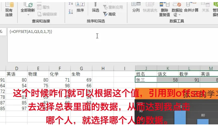 这个时候咋们就可以根据这个值,引用到offset去选择总表里面的数据,从而达到我点击哪个人,就选择哪个人的数据。