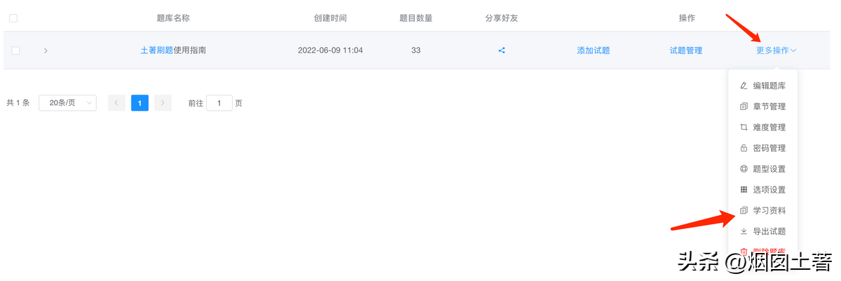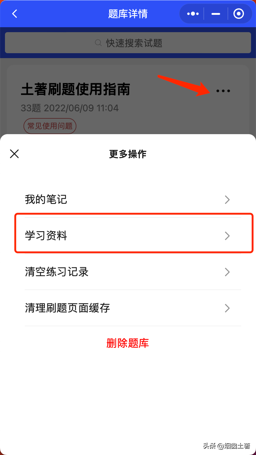题库管理员可以在后台添加学习资料,学员在小程序端题库详情页的更多操作就可以点击查看了。