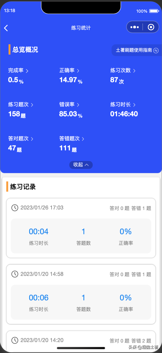 题库的练习统计在已有的5个维度的前提下,新增了3个维度,并可查看每次练习记录结果