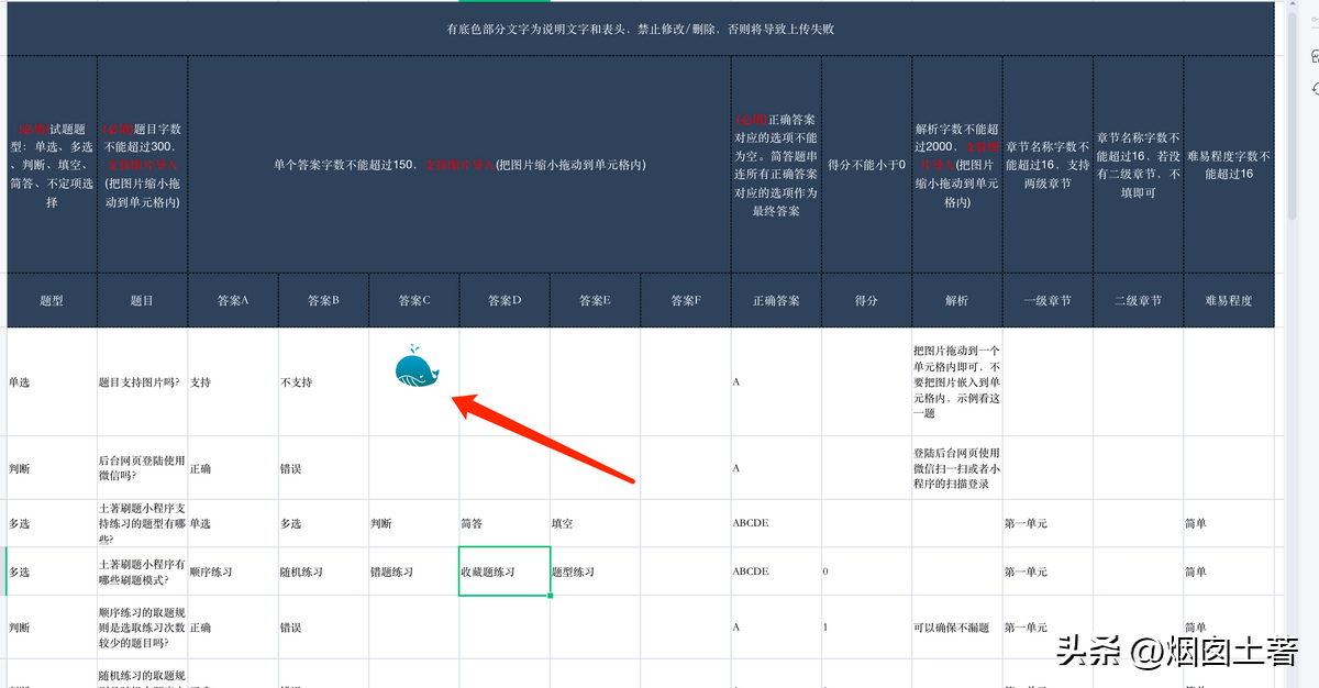题库管理员可以在后台编辑题目的时候添加,也可以单题导入的时候选择题目,最主要的Excel文档导入也支持图片,只要把图片缩小拖动到某个单元格内即可,题目的题干、选项、解析三个属性支持图片。