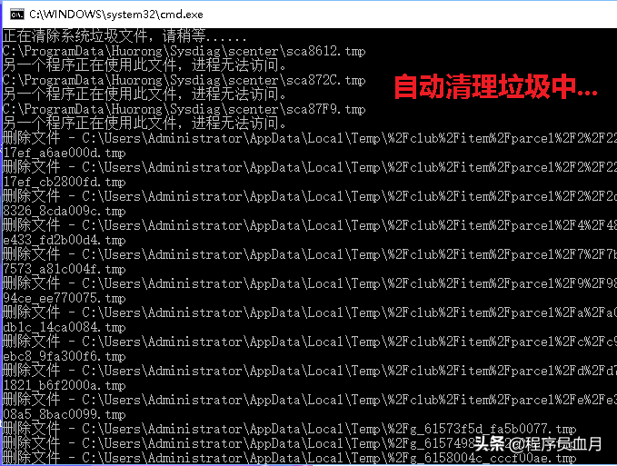 最后我们只需要双击运行这个批处理的文件我们的电脑就会全自动地清理电脑缓存垃圾文件了