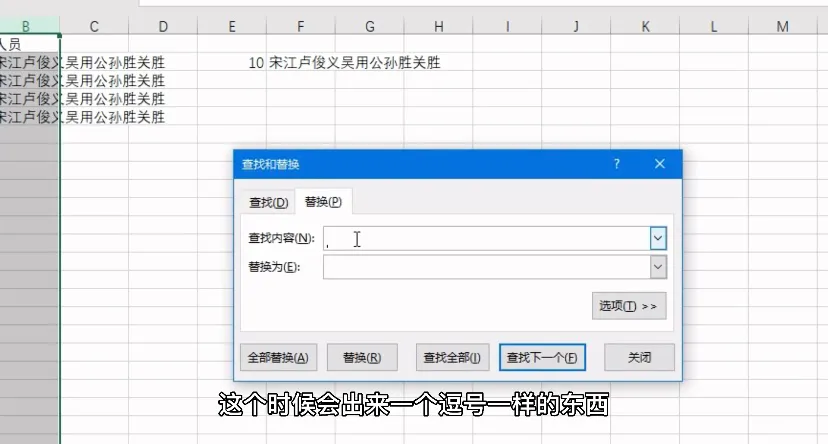 [酷拽]第一种,查找替换!首先咋们选中要删除换行符的区域,然后Ctrl加f弹出查找替换,选择替换,然后在查找里面输入Ctrl加j,这个时候会出来一个逗号一样的东西,直接全部替换,然后换行符就被删除了!