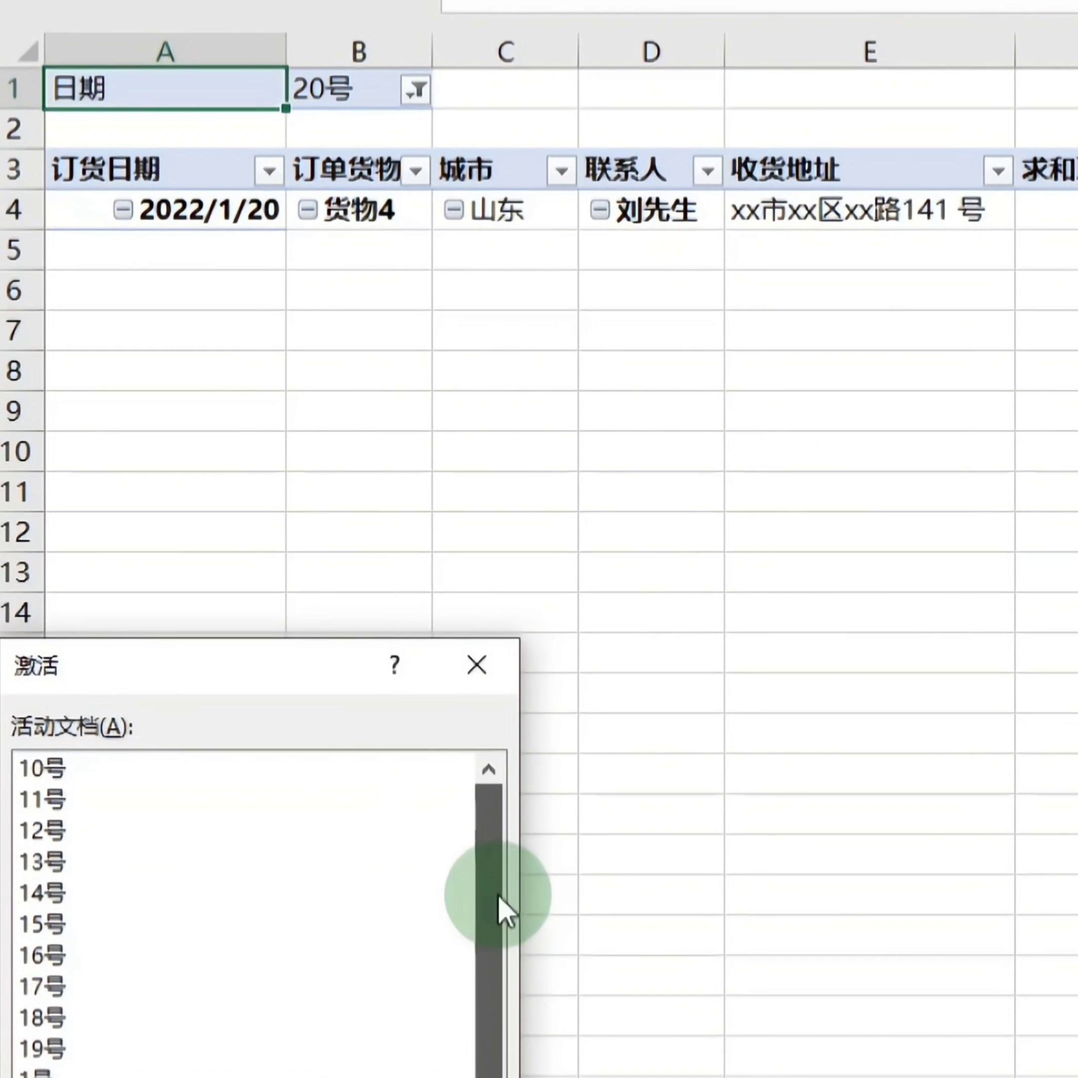 然后我们在下面单元格里x8118,我们可以来到编辑栏里xx区x118号,输一个等于号,我们输一个day函数,z02然后去选择前面这个订货日期118号。这个单元格我们补括号xx区x路118号。然后我们写个链接符,然后输入双引号,在双引号里面x区x118号,我们可以写一个号,然后回车。