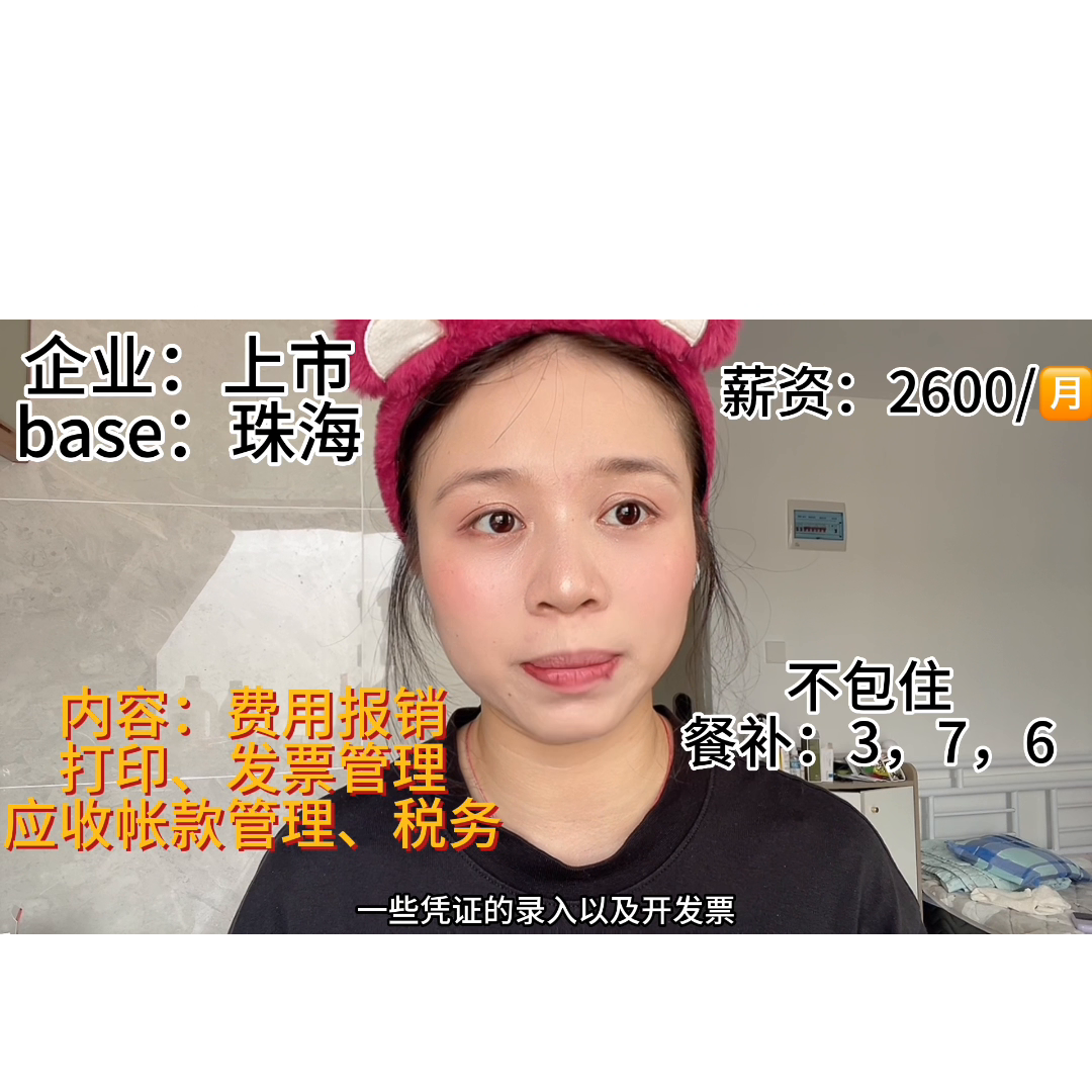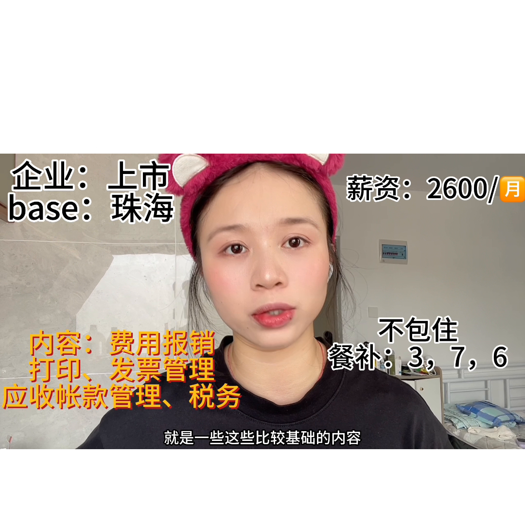 接下来企业的实习,他的坐标是珠海,是上市企业,他的实习薪资大概是2,600,是不包住,用的是餐补。餐补是早餐3块,中午7块,晚餐6块的水平,一般都会吃超,所以可能一天下来,自己还要再额外给10块钱左右。如果你要住就要扣掉600块钱。