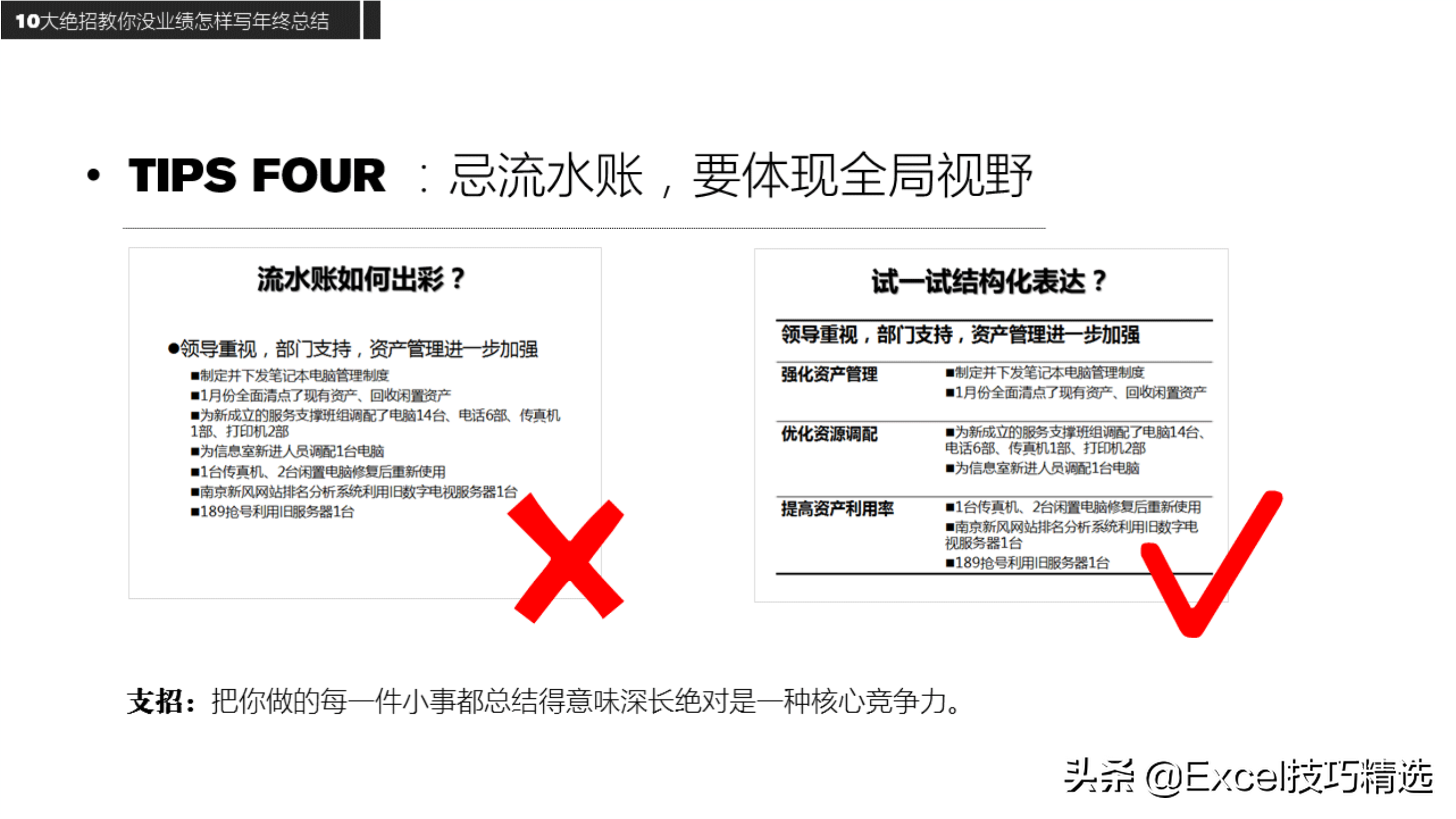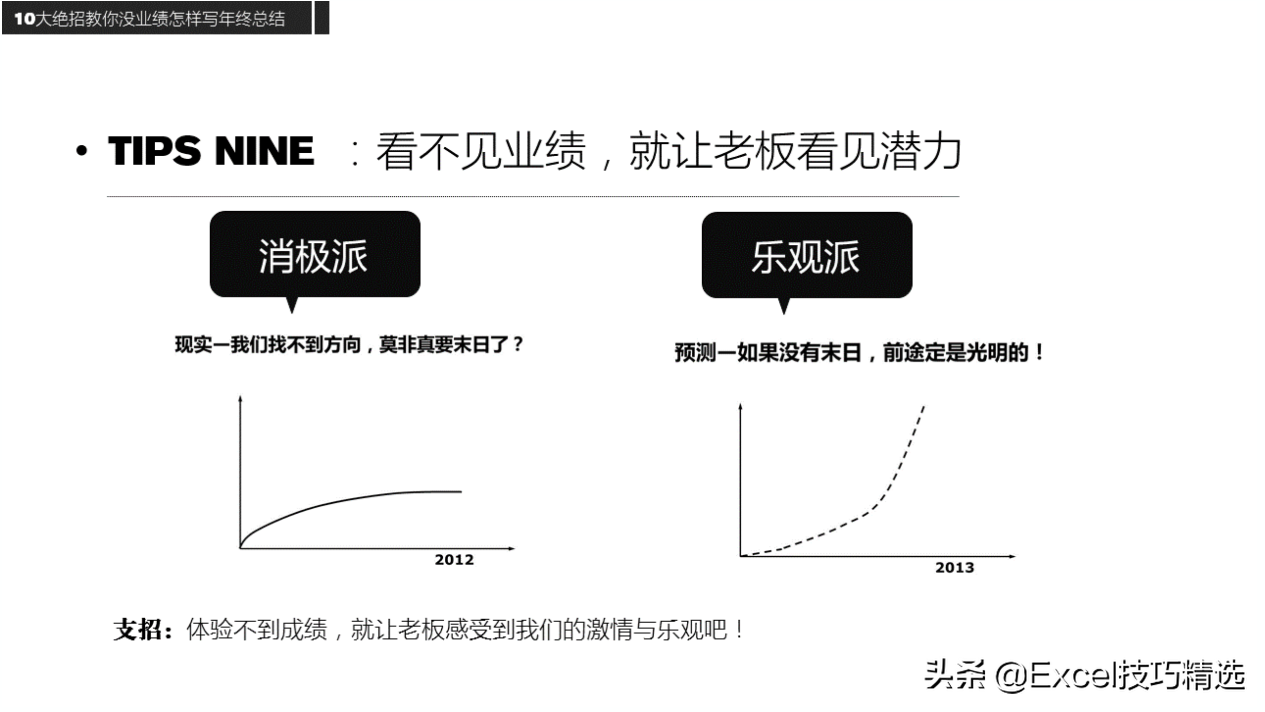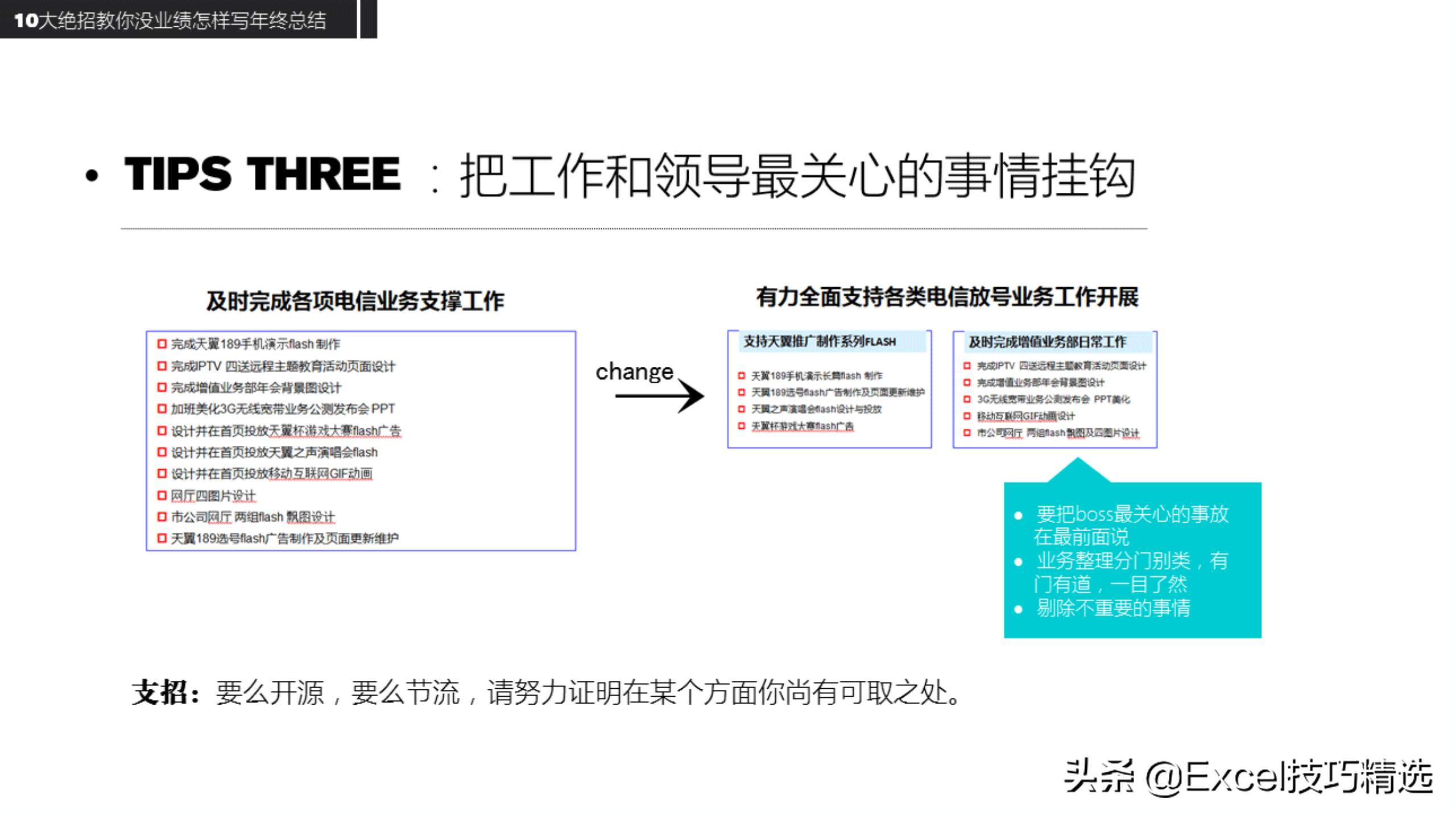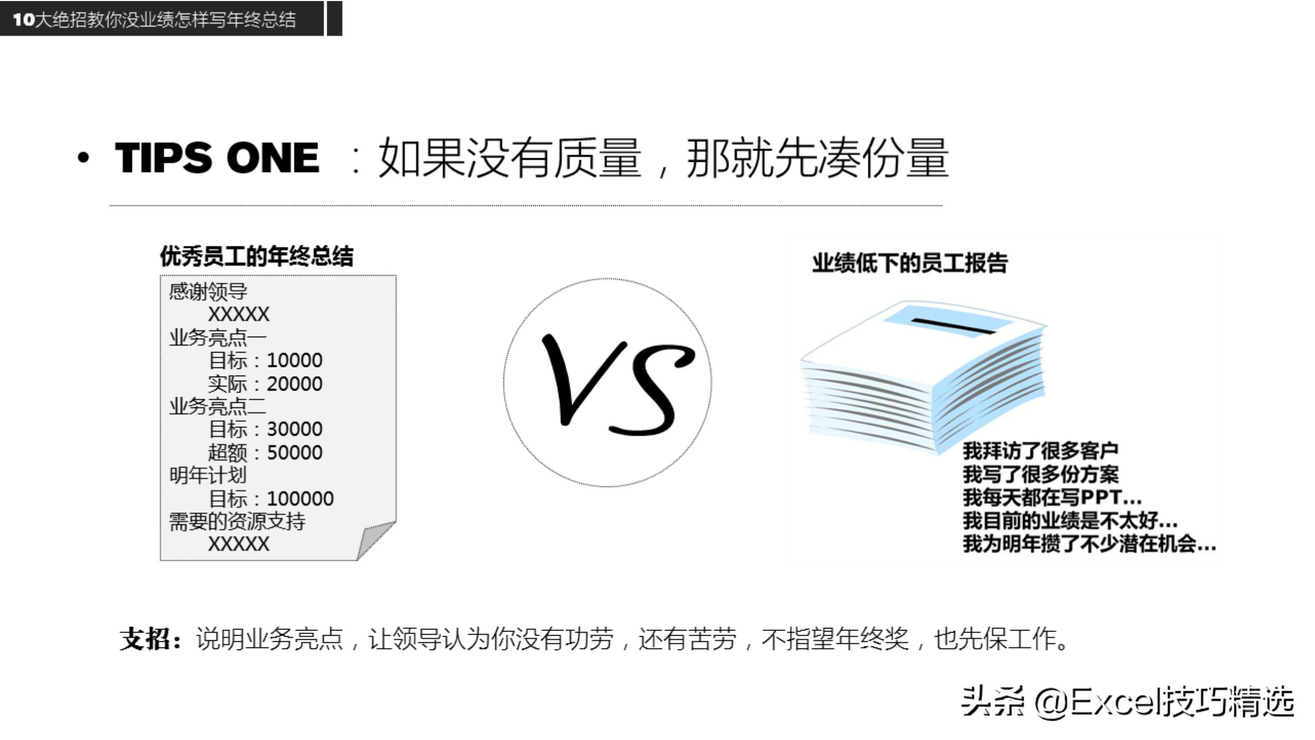 三、10大绝招:没有业绩,也能写好工作总结