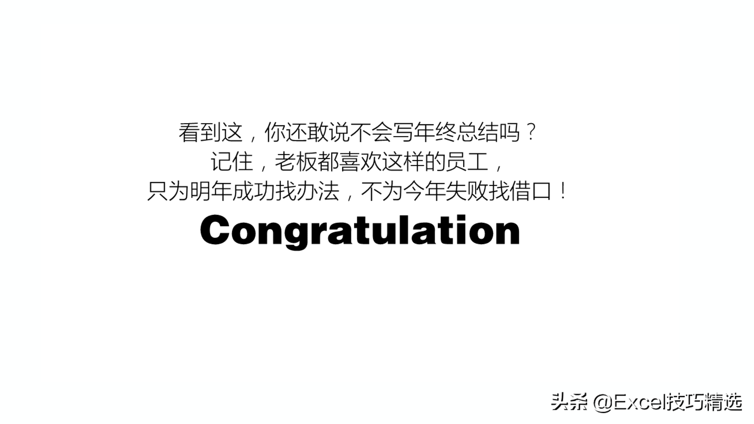 结束凤尾:从点到面、提升层次。1.人无完人,总有遗憾,未来的你还能做得更好,并制定提升策略;2.你也是团队的一份子,你的经验和教训,都可以分享出来,影响更多人,体现出你的价值所在;3.最后,总结与规划密不可分,就像PDCA总是一环套一环一样,为你的下半年明确一个目标,制定一套可行的规划。