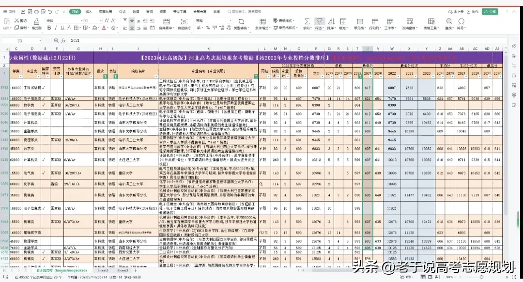 这次孩子的筛选条件都出来了,然后就是在Excel表中操作了,本科,物化生,临床医学或口腔,城市没有太大要求,今年高考分数换算成22年等效分,585-615分数范围,一顿鼠标点击,孩子的志愿表就出来了,然后根据分数排序,就有个大概样品了,再根据地理位置,院校喜好上上下下排个最终顺序,一张志愿表就出来了。