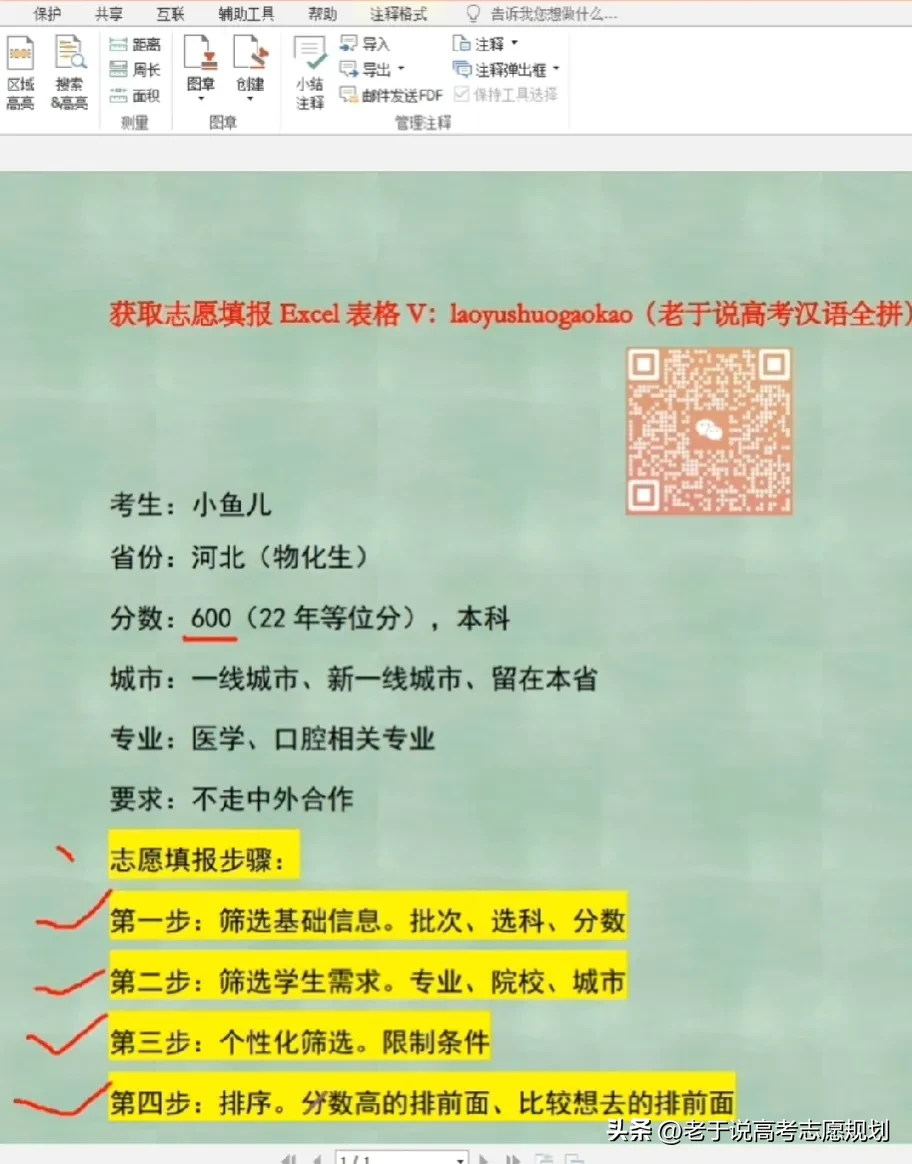 以河北志愿填报为例,河北是新高考专业+院校方式,可以填96个志愿,我们使用的工具就是这张表格,其实不管是志愿填报软件,还是高报师的报考系统,底层都是这个Excel表格,这个表格匹配了2020-2022三年专业录取分数线,三年招生计划,专业选科要求,专业限制,涵盖了志愿填报需要的很多数据信息,我们就以一个河北600分的考生来进行演示。首先大家要知道志愿填报一共有几步?