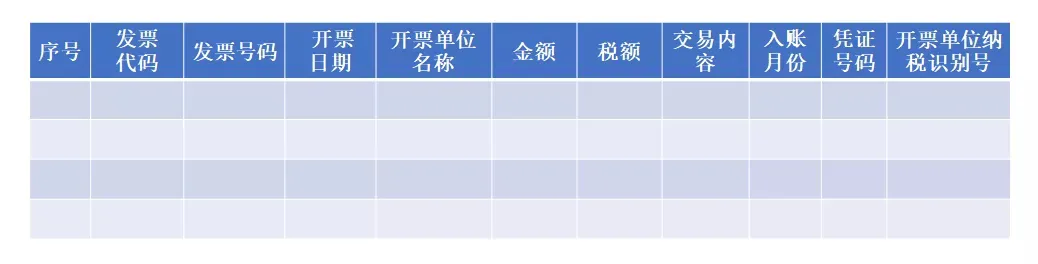 其中涉及的电子发票台账,我参照全电发票导出的格式,做一个样式供参考,可以利用税务数字账户中现成的数据格式,减少手工录入。