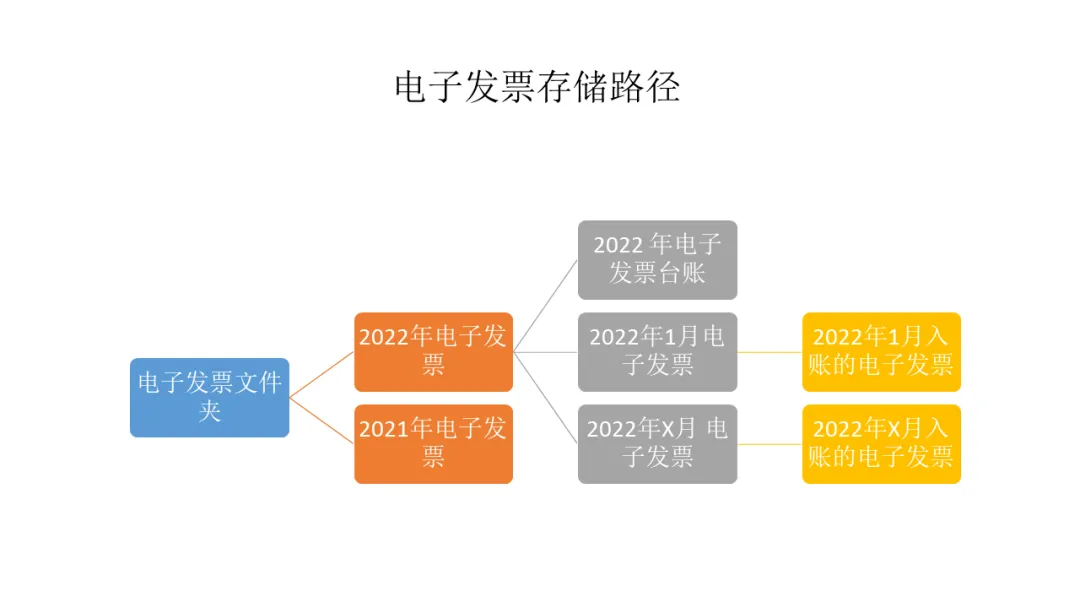 按照年份建立电子发票文件夹,在每个年度内,设立excel格式的电子发票台账和按月设置电子发票文件夹,在这个文件夹中存放这个月入账的电子发票的电子文件。