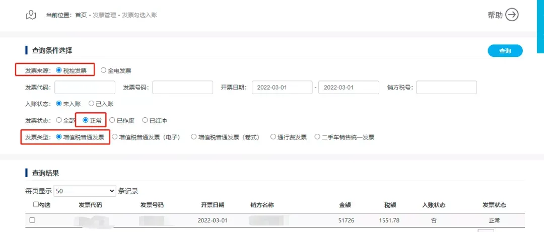 发票勾选入账,先按照开票日期查询,如果在未入账状态中查询不到,可以在已入账中查看,这张发票是否已登记入账。这样可以避免重复入账。