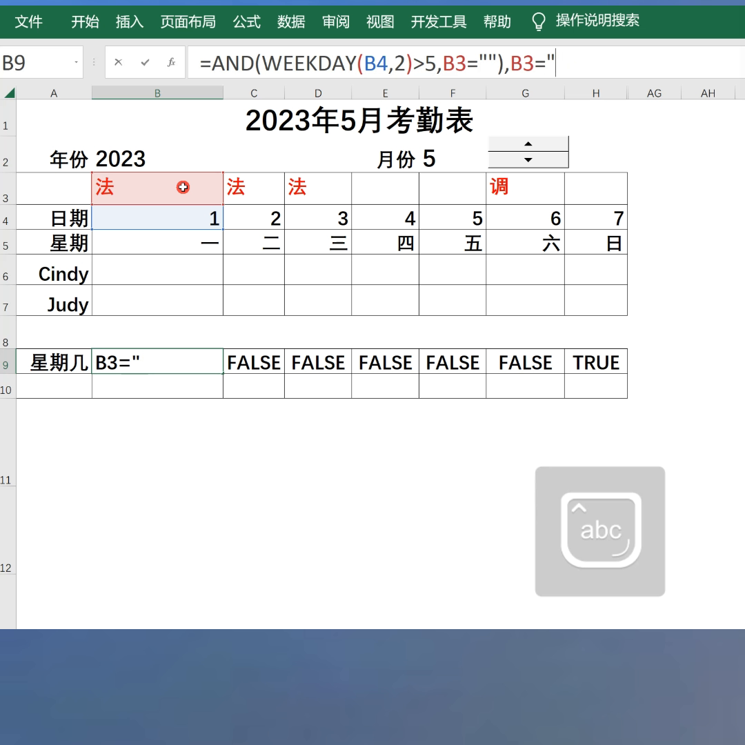 5月6号调休,因为五一放假春节更长,怎么做显示法定假日的考勤表呢?表头制作可看时间第40集。