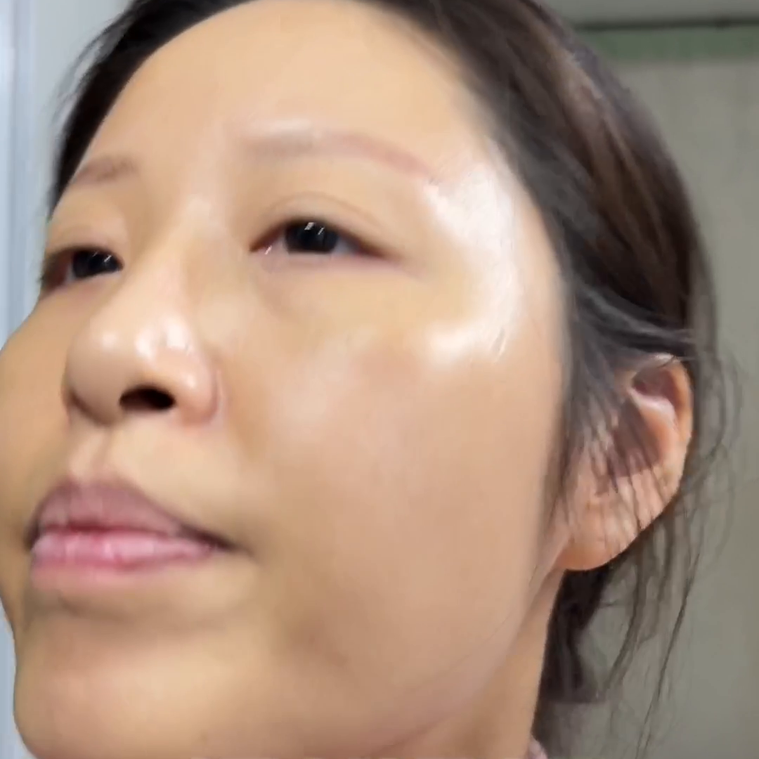 持妆3个小时,鼻翼两侧就出现了油光,T区油光出现,鼻翼两侧的油光面积就增大了,就出现了明显的脱妆现象,并不斑驳。脸颊未出现油光地方,过了半天,这种拔干的感觉就在加剧,并没有缓解它压粉压的。