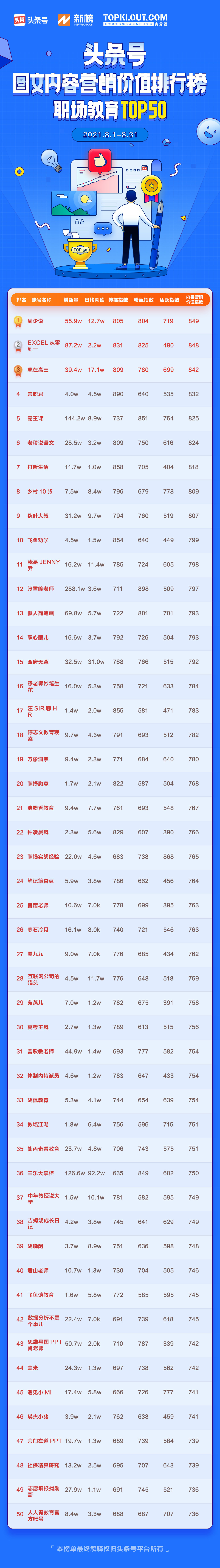 测试项目:2021年8月头条图文营销价值排行榜图片