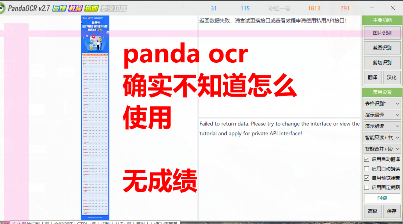 4.部分软件无法进行批量、大图识别,如天若