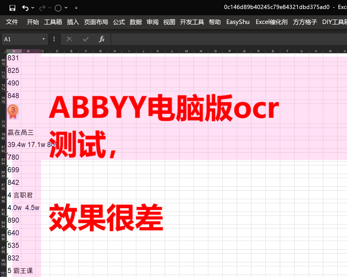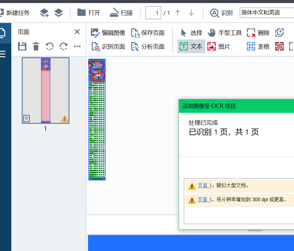 复杂长图扫描测试,意外的是新加入的ABBYY表现并没有传说中那么好。