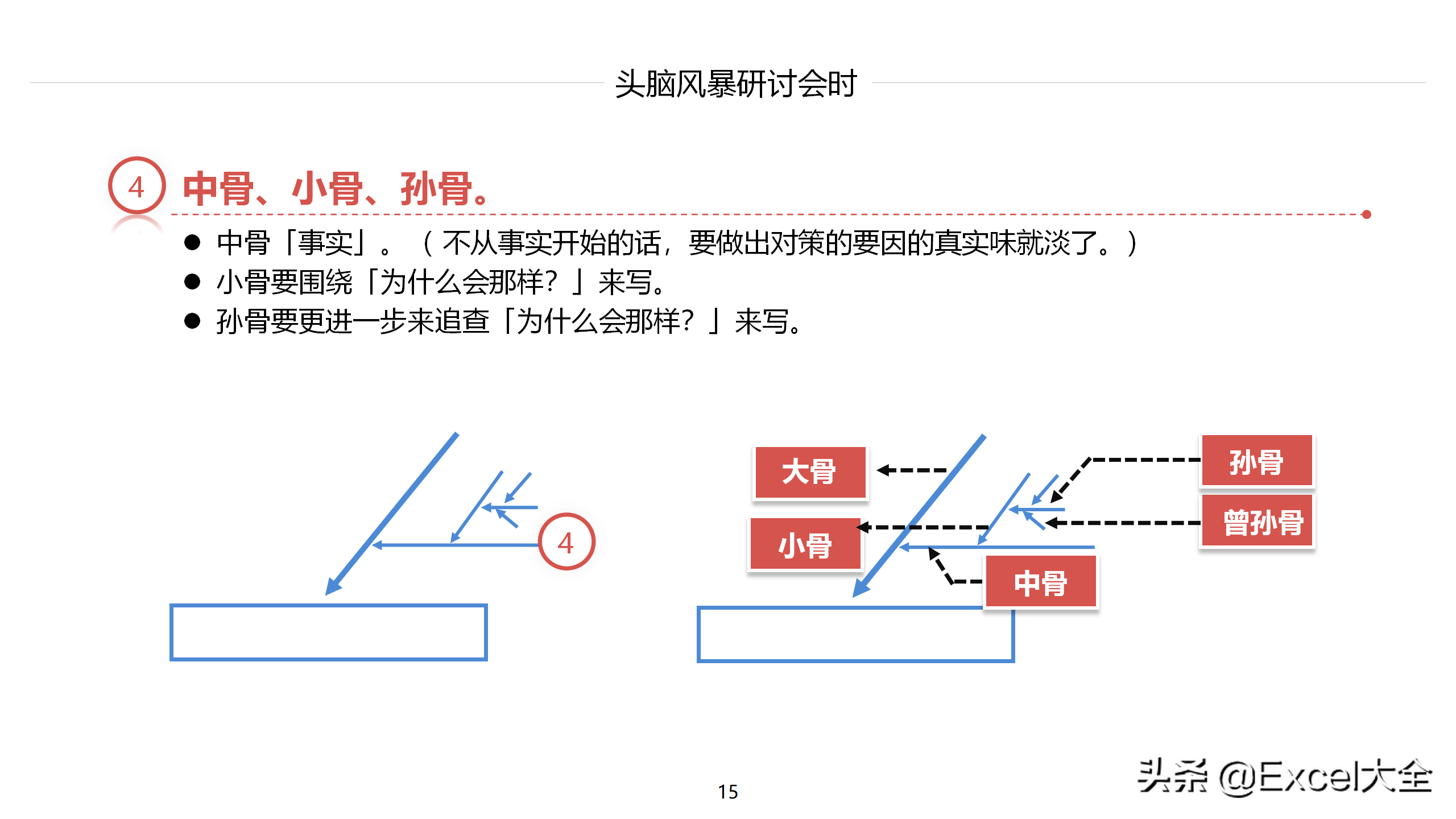 细骨:列事实,基于事实,追问为什么,分析产生问题的原因;