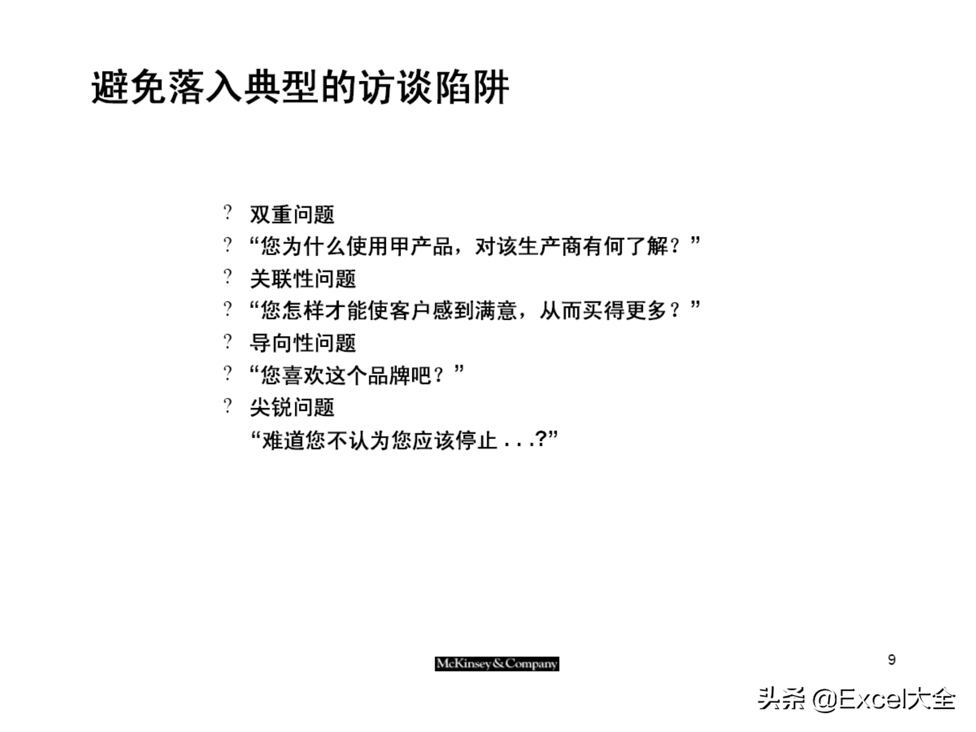选择访谈的问题类型:不同目的,不同问题类型;
