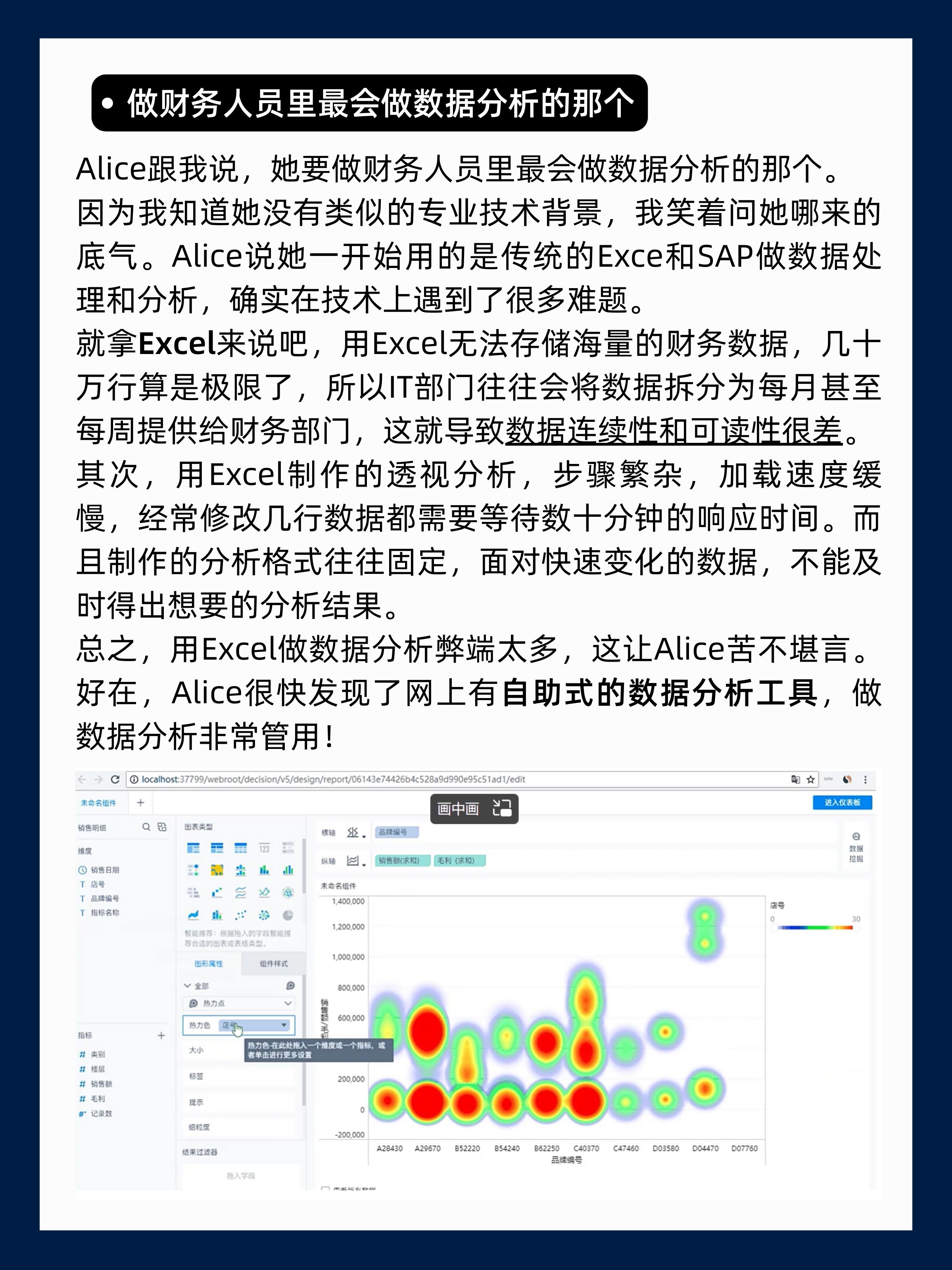 如果涉及到数据库,那还是选择专业软件。首先Excel对数据的处理性能是有限的,而且很难实现实时数据更新。在具体的报表工具选型上,国外软件并不推荐,水晶报表这种做中国式报表有巨大的局限;国产软件方面,Finereport等报表工具采用拖拽式操作,类excel界面,其功能、性能的确更好地解决了中国用户的需求。